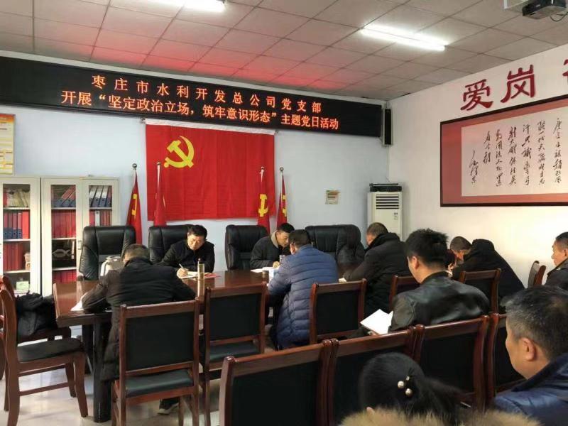 12月14日下午,棗莊市水利開發(fā)總公司開展“堅定政治立場,筑牢意識形態(tài)”主題黨日活動,傳達學(xué)習(xí)習(xí)近平總書記在全國宣傳思想工作會議上的重要講話精神,并研究部署貫徹落實措施。